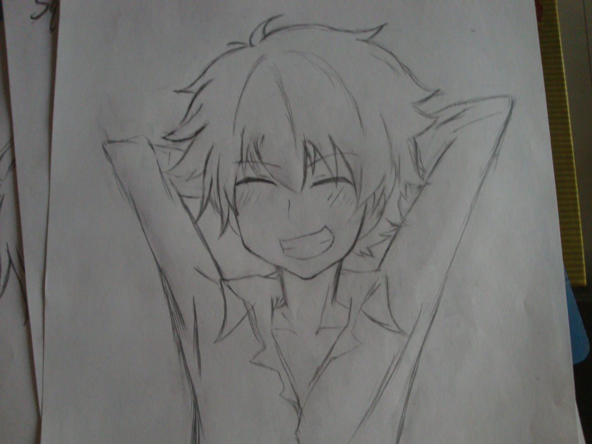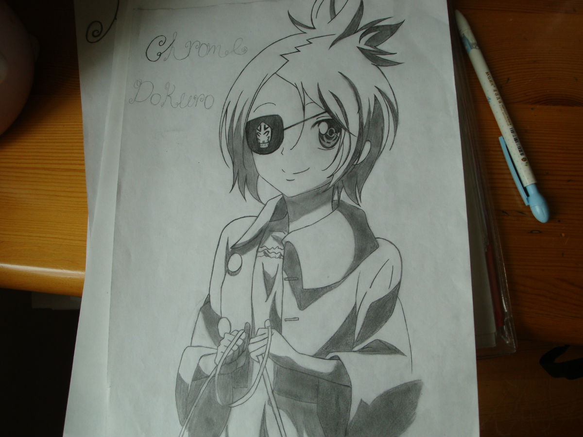 你好我是酝画部的部长,如果不看原图的话这幅画很不错,但是如果对比来看,问题就出在脸上,头发不是三七分而是中分这个要注意,还有嘴巴的问题,库洛姆不会笑的这么灿烂,总体来说还是很好的