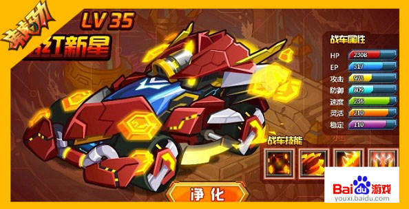 没有伙伴的战车只是冰冷的机器,孤独的存在于深渊之中。在这些战车中,第一个有机会得到净化,找到荣辱与共的伙伴的就是—焰红新星。焰红的车身,金色的护甲,显示出它优良的防御能力。因为战斗而燃起的热力让它的速度变得更加的迅捷!只有羽神火种的力量能够净化战车,帮助它们摆脱来自深渊的束缚。最多只要六次,就一定能够净化成功哦!