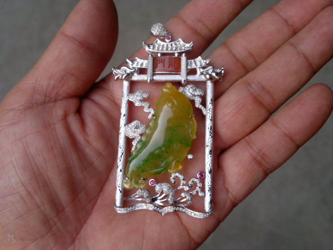 今天在公园看到别人这种种水的黄翡太透了有一种B货的感觉!真没绿色好看
