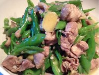 今天弄了个简单的菜,青椒鸡。这个是我老妈的拿手菜,我从小时候吃到现在都觉得好吃。我妈也最喜欢弄这个菜了:在菜市场上买斤多重的小公鸡回来,用青椒一炒满满一盆。看起来简单,但是吃起来香得扳:是青椒香来鸡肉香,中间还夹带点花椒香,是下饭