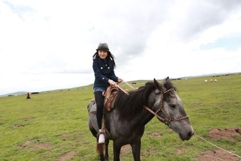 虽然前面有人牵着,但还是有模有样的,看来还真是会骑马!