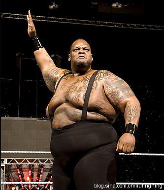 体重:205~225kg(450~495磅) 名字就已经说明一切。来自芝加哥小巷,体重近500磅秤的One Man Gang(一人帮)一人就代表着一个帮派(部队)队伍。身高6.9英尺,留着一撮莫霍克发型的‘一人帮’已经够令人胆寒了,不过真正令对手害怕的却是他的绝招‘747 Splash’。从他早期在WCW到在Slick带领下的WWE,这位壮汉留下来一长串的受害者