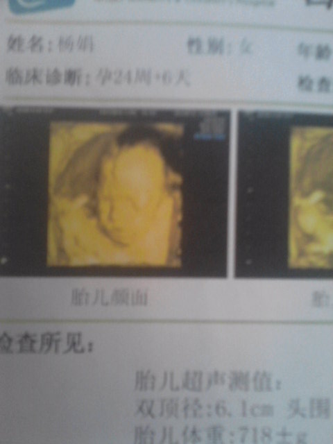 好可爱好清楚啊。我今天去照的四维,宝宝拿手挡着脸了都看不清楚。。。55555