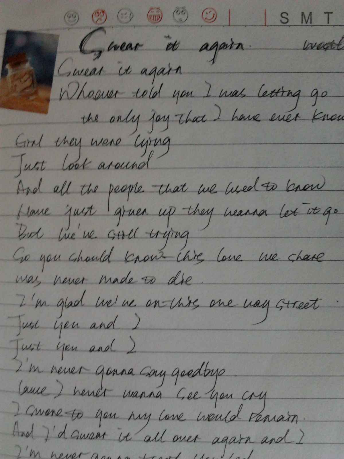 至今为止不知道抄的是什么歌词··