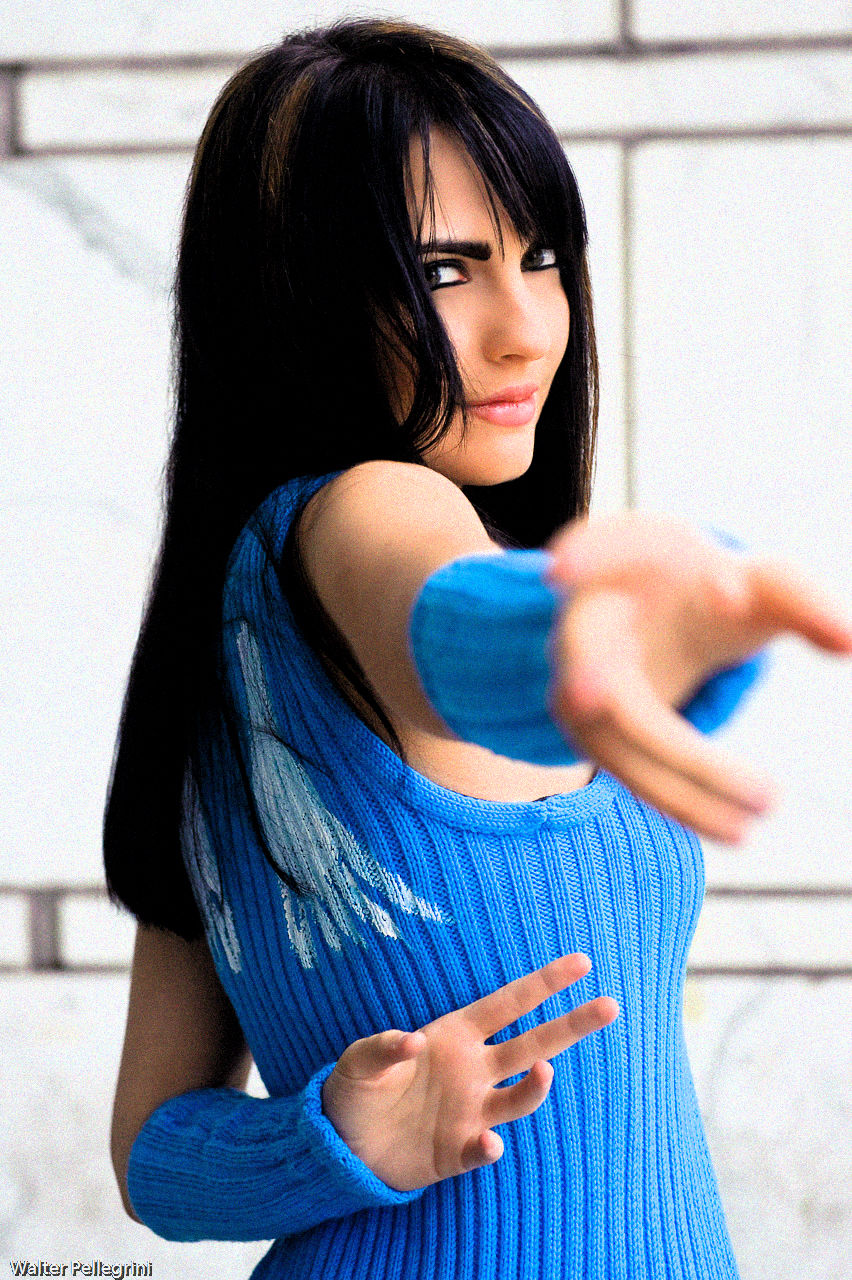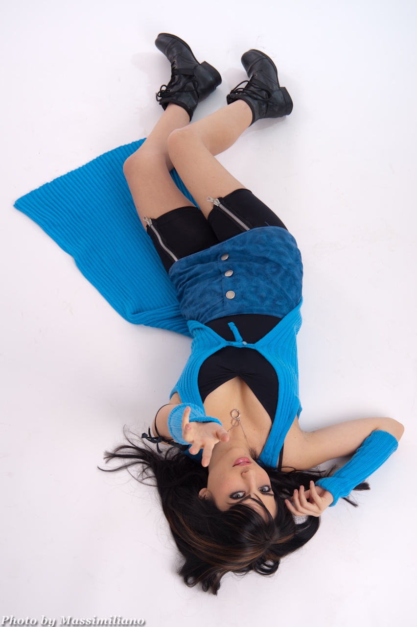 About the cosplay, the duster and armwarmers was knitted by me^^ I used 100% wool^^ Instead, I made the skirt with a blue cotton fabric, gradient with a light blue color for fabric!