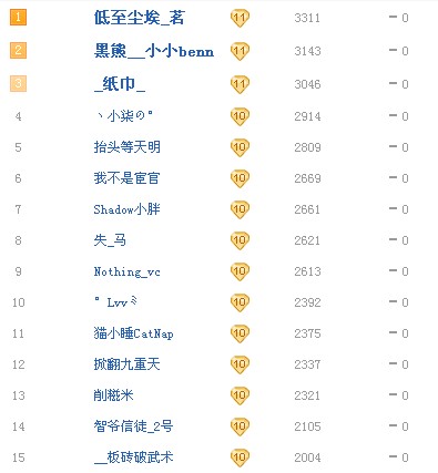 我多无奈啊 我从14 慢慢的爬到了11~~