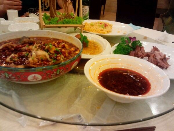 貌似是在川府人家,含光路口,朱雀桥下,他家菜貌似可以团购,团购的一桌才70多,菜味道还行吧
