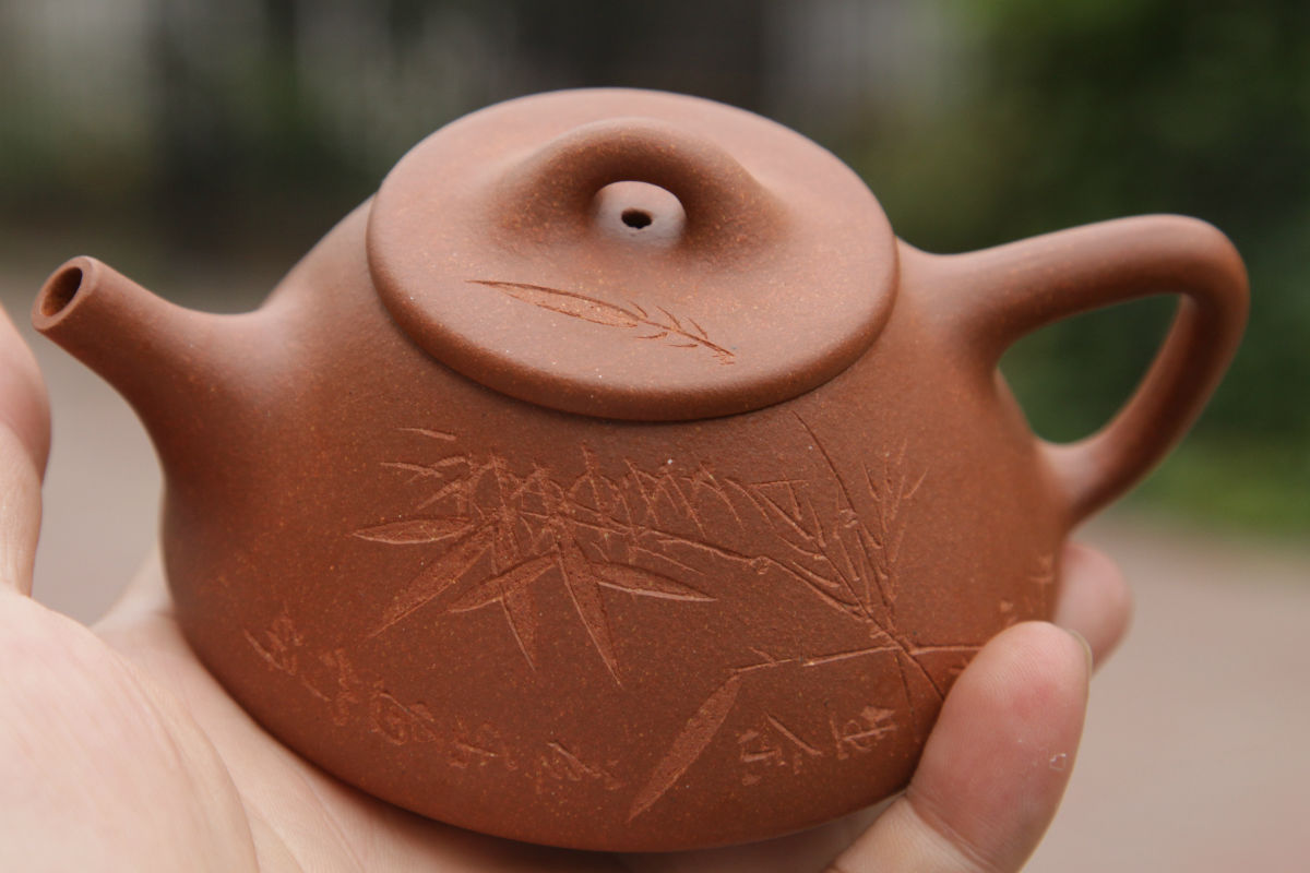有刻绘的壶目前接受不了,照片看把有点歪,不过160的价格就不多说啥了,原矿,外加有这样的做工,可以了.