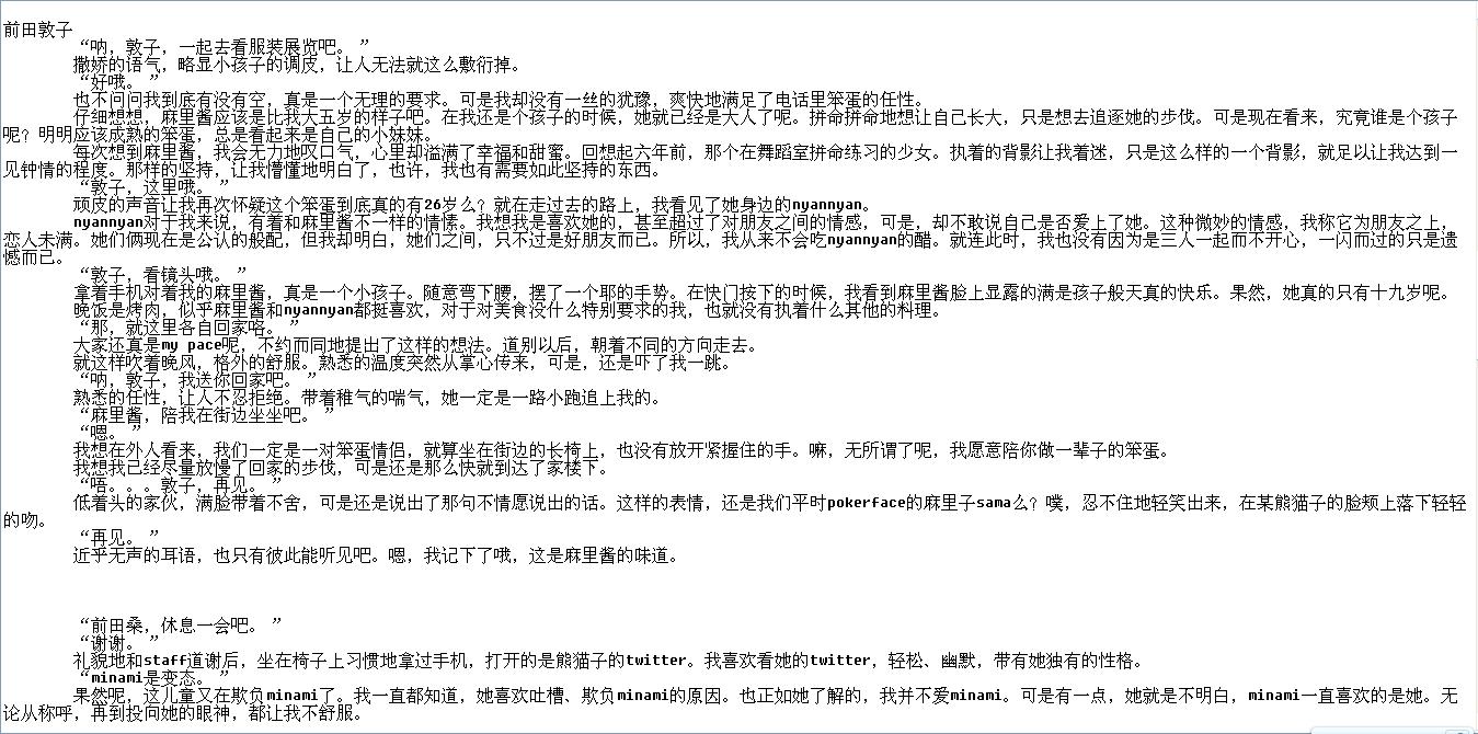 手已经轻轻地环上了敦子的腰间,下巴就这么任性地靠在了敦子的右肩。好看的邹鼻子笑绽放在敦子的脸颊,篠田知道,敦子再一次包容了自己的任性。