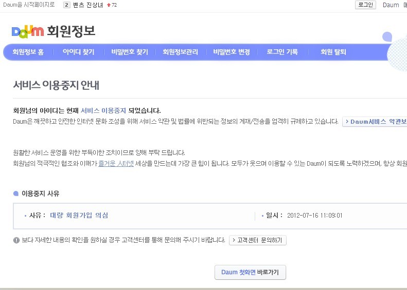 亲们注意啊, 用DAUM投票注册的,用户名不能连号,也不能太相似,密码也别一样! 这样容易第二天全被吞号的。 要注意啊,注册时麻烦一点吧,为了以后的每一天不麻烦!!加油!! 亲们重置密码有时间限制的,投完立马就去重置密码,就不会封号了