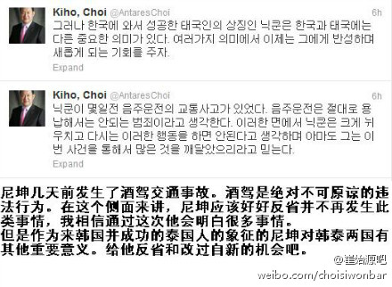 父亲推特韩国时间05:00更新两则,意思与始源连推的五条意思基本一致,详情请看下图。始源父亲同时也转发了始源的五条英文推。转载注明-百度崔始源吧&BLESS崔始源中国应援站。
