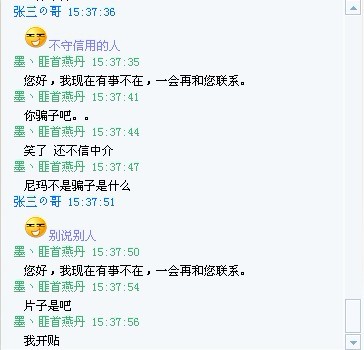 【幻幻】举报骗子,没骗成,尼玛不信中介。说了好多。