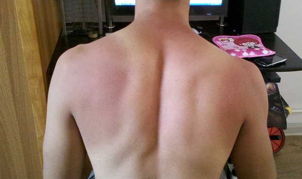 浑身上下全晒成红的了...疼
