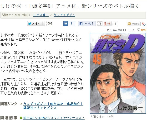 【炒冷饭】]『头文字D』新作动画制作决定