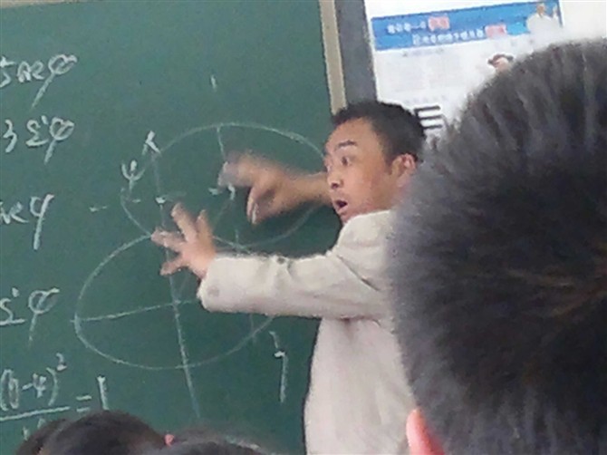 其实也不是相素差,是我用手机里面的偷拍软件无限拉近后拍下来的,所以才是这个样子。那是我上课的时候坐最后一排拍的