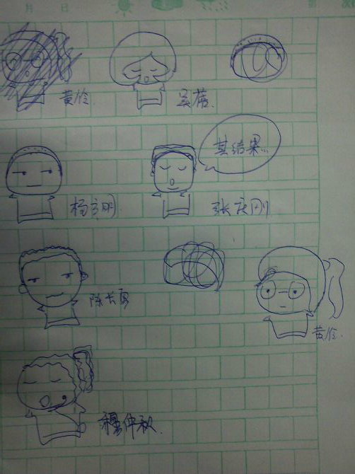 这是我某次无聊的时候随手涂鸦~画得不好勿喷~这都是高二(现在都高三了)4班各科老师~