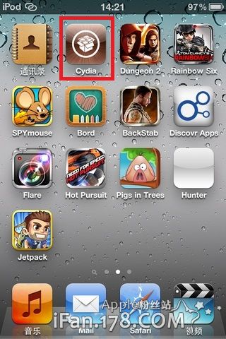 1.点击桌面Cydia图标来对插件进行安装