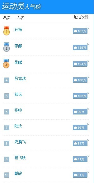 奥运运动员排行无“翔”?