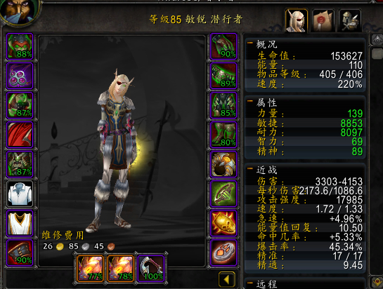 属性 全身50敏 有410装备尽量换上 命中满足5.0以上 有人喜欢20精准 请自已调。贼这个职业现在在PVP中需要一定的抗击打能力,但DPS相对更为重要,没有一个好的属性在对LR,FS等的战斗中就算任性在高,也因没有在短时间内打出高DPS而让对让的下一轮技能CD好而反打到死,因此贼还是以DPS爆力才是王道。