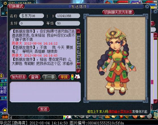 不知道 是以前 武侠小说 看多了 还是 被 吧里 的 苦逼 熊德 感染的 总认为 到了这个时候 他应该找出一大堆 牛B 啦瞎 的 大号扬言杀我 不让我 出城怎么找的