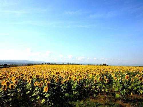 6、印度向日葵园 “更无柳絮因风起,惟有葵花向日倾”向日葵——向往光明之花,给人带来美好的希望,向日葵的美就在于她的阳关与活力!传说古代有一位农夫的女儿名叫明姑,被后娘百般凌辱虐待。一次惹怒了后娘,夜里熟睡之际被后娘挖掉了眼睛。明姑破门出逃,不久死去,死后坟上开着一盘鲜丽的黄花,终日面向阳光,它就是向日葵。向日葵表示明姑向往光明,厌恶黑暗之意,这传说激励人们痛恨暴力、黑暗,追求光明,因此世界的许多地方都有美丽的向日葵花海,而印度只是其中的代表之一。