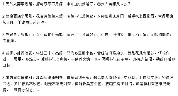 他快步穿过人流,来到心上人的身边,主持人在说什么他都置若罔闻,仿佛身在一个只有他和乔治花的世界里。接着他就看着乔治花走上了舞台,穿着***的水手服,扭动着灵蛇般的身子,跳起了钢管舞。人们晃动的肢体,激动地神情,都触动了书记那根敏感的神经,这一刻,他想把台上的那个姑娘狠狠的招待一番,“她是我的!”