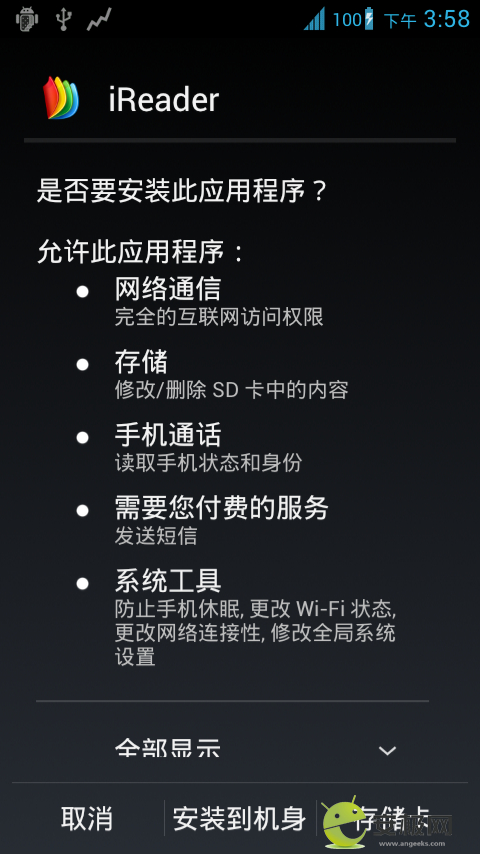 软件安装位置可选(手机还是存贮卡)