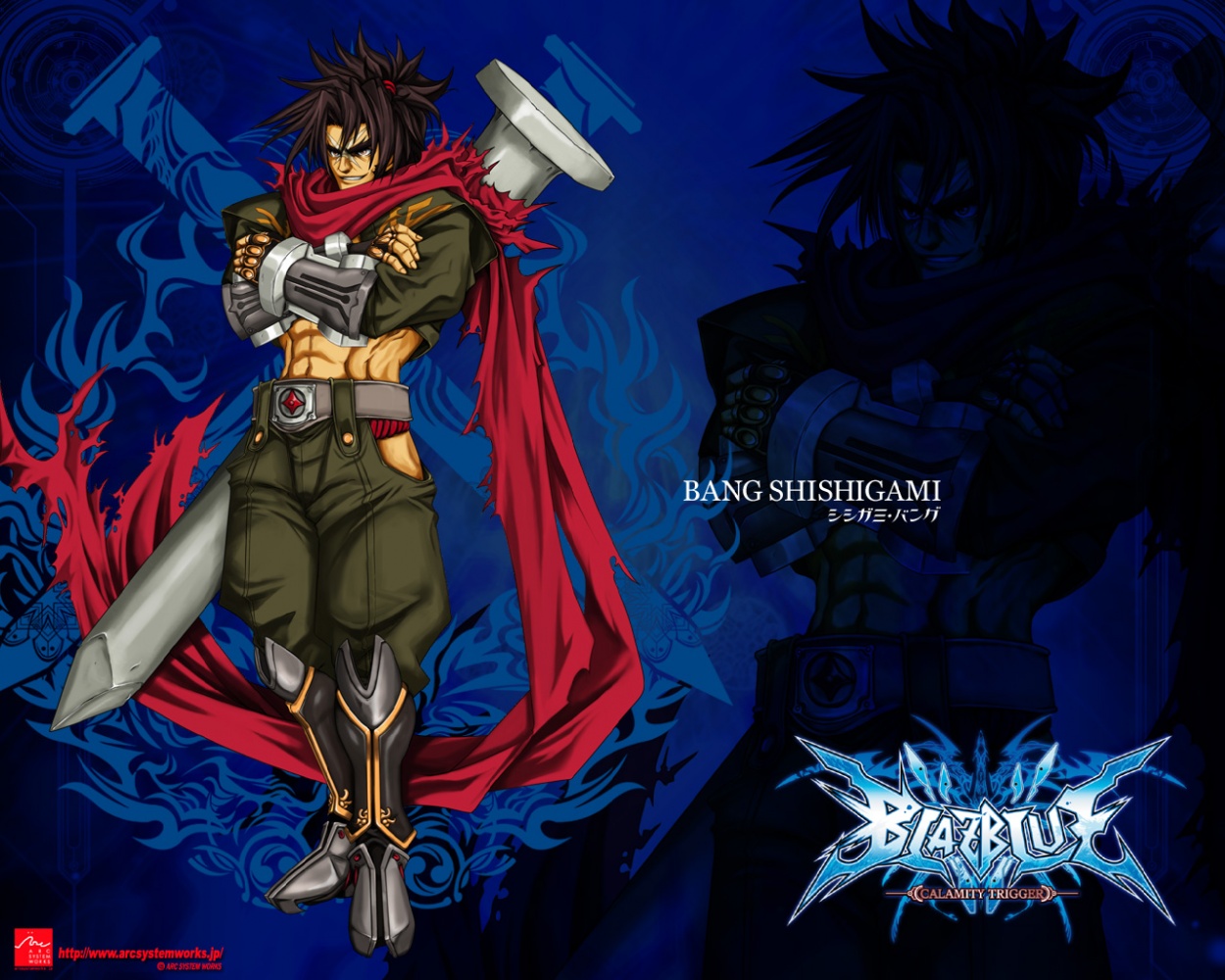 简介:曾经是反抗统制机构的‘班鸠联邦 (イカルガ连邦) ’的忍者军团首领,后来该国被统制机构消灭,他带着遗民逃亡到阶层都市“迦具土”,建立浪人街,并当上了除罪者(咎追い)。对于杀害自己前任君主的Jin怀有恨意。 虽然喜欢莉琪,但每次想要在她面前表现都屡屡失败。虽然是忍者但性格热血,而且非常积极,甚至有对人长篇大论说教的一面。 使用忍术与钉状的手里剑战斗,拥有打击投技为主的体术与强化自身机能的“风林火山”状态技能。CS故事中被告知拥有事象兵器 (アークエネミー)凤翼·烈天上,但本人对此一无所知。在家用版亚洲语系的故事模式里面,其名シシガミ・バング被翻译为“狮神邦哥”。