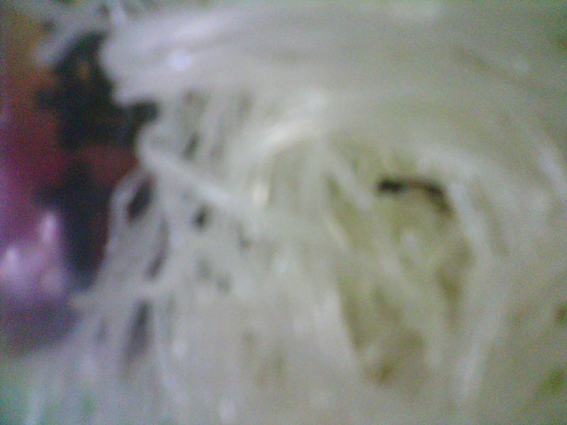 前几天在超市里买了一大包即食米粉,已经吃了二包了,今天吃到第三包,一打开有些黑色的东西在米粉饼中,我看了半天也不知道是什么,开始以为是虫子,后来发现它就是米线,但为什么会是黑色的,我想知道他们的米线是用什么做的?
