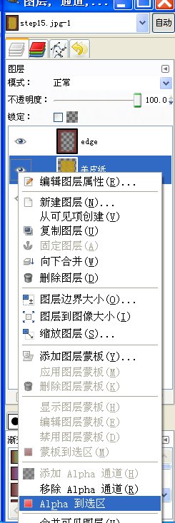 选择"羊皮纸"图层,右击再点击"Alpha到选区"