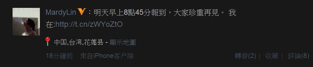 :明天早上8点45分报到,大家珍重再见。 我在:中国,台湾,花莲县
