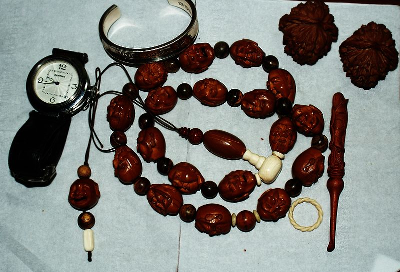 用前几天买的小料,搞了两个小时,磨的手快秃喽皮了!又买了20个印尼沉香散珠,配到串上看着还算顺眼,再上个平时随身带的玩意儿。