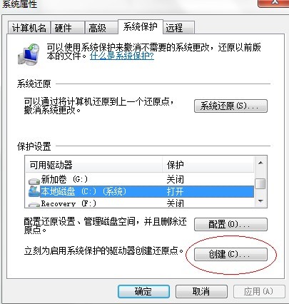 右键计算机 属性 系统保护