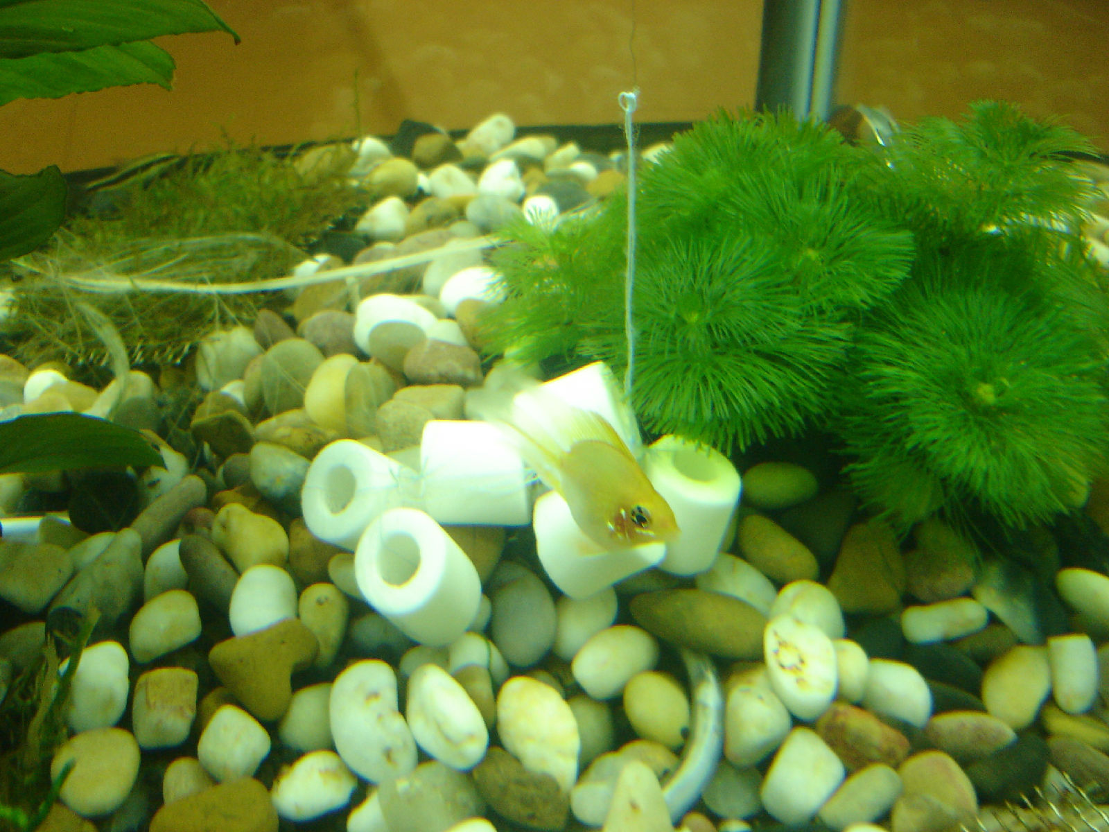 自从水温调到30度以后草就长得不怎么样了……那一堆陶瓷环是用来坠住莫丝球的,浮力太强了,必须要7个陶瓷环,绑的不好……