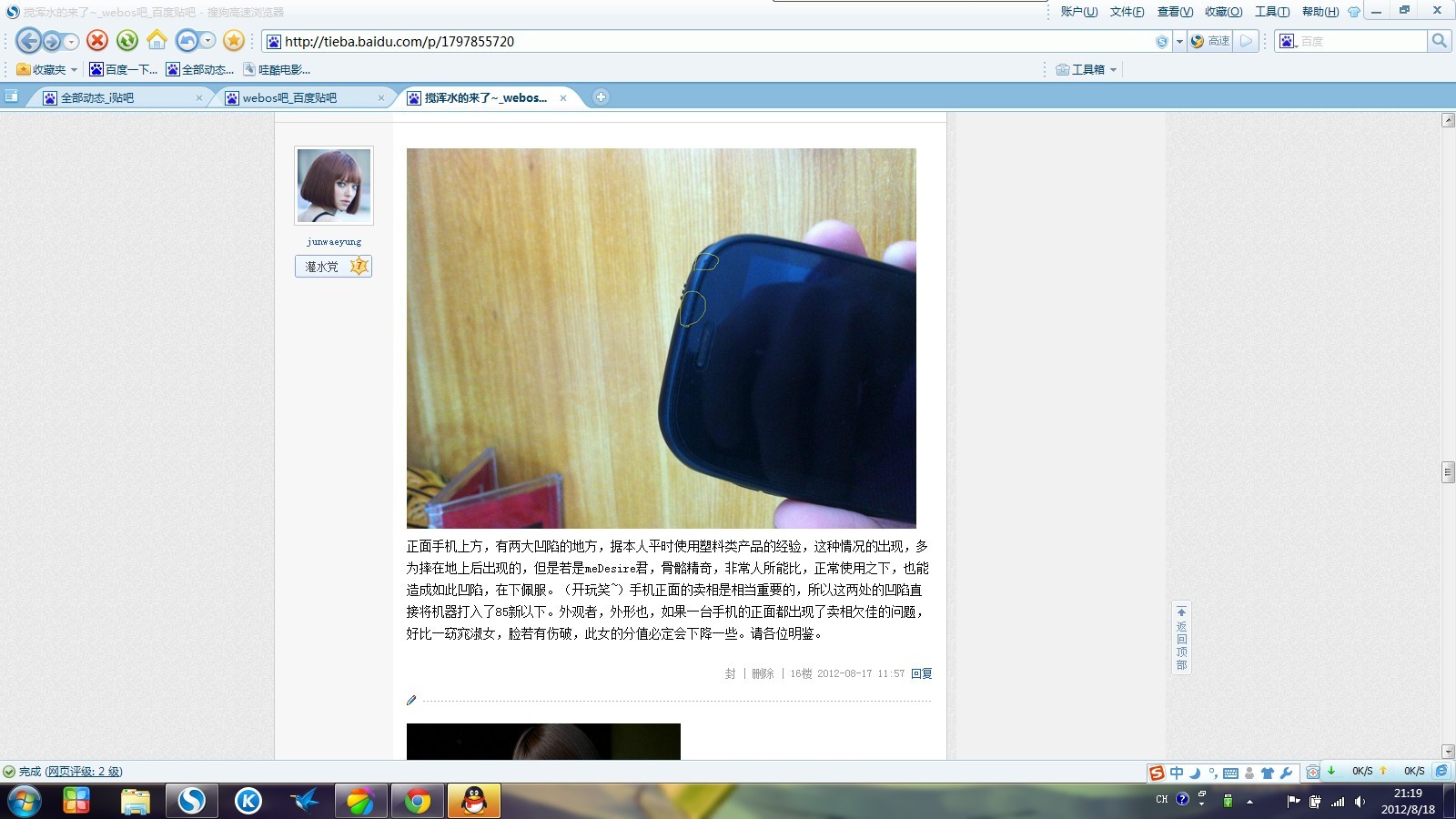 这是泡面拍的图片以及jun哥哥通过论坛的成色定义对P2进行了判定,定义为85新。