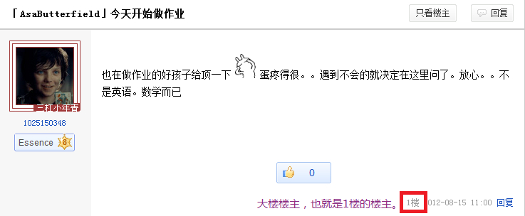楼主也就是这个贴的主人,或者说是1楼的主人。像图片中的那一贴的楼主就是我。