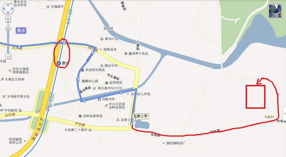 红线箭头那部分路要自己走,挺远的,拐弯后的路还不好走