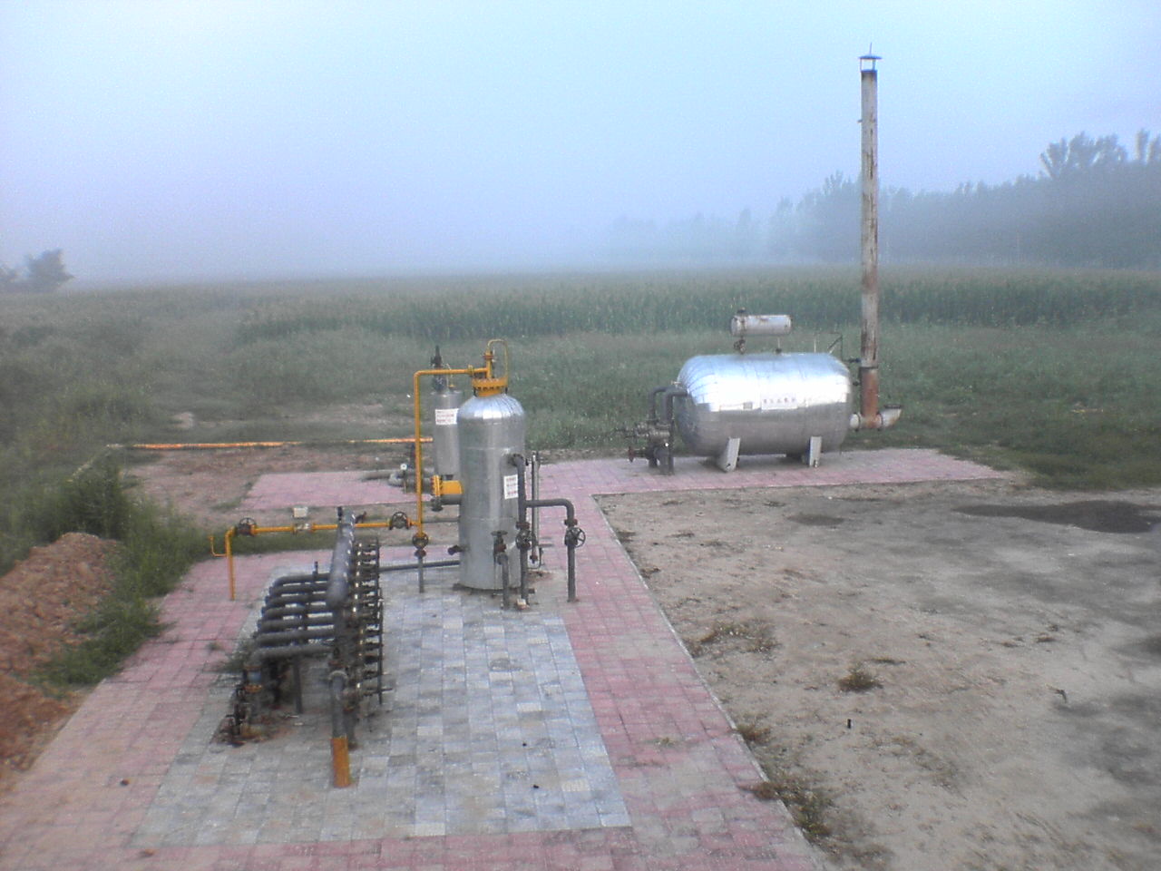 从房间里来看是单井的典型特征,从多功能罐上拍下的抽油机和铁皮房来看也是单井。但从室外看,有分离器,水套炉,流程阀组等,又是站的典型样子。因为一是站无围墙,二是单井离站的设施有一定安全距离,所以是可以做饭的!单位配备的应该是图上的那辆自行车,电动车是个人的吧。所以鉴定为单井和站合一,合管。住在单井,要管理相邻的无围墙的站!