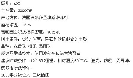 注:Chateau Calon Segur 国内更多译作凯隆世家