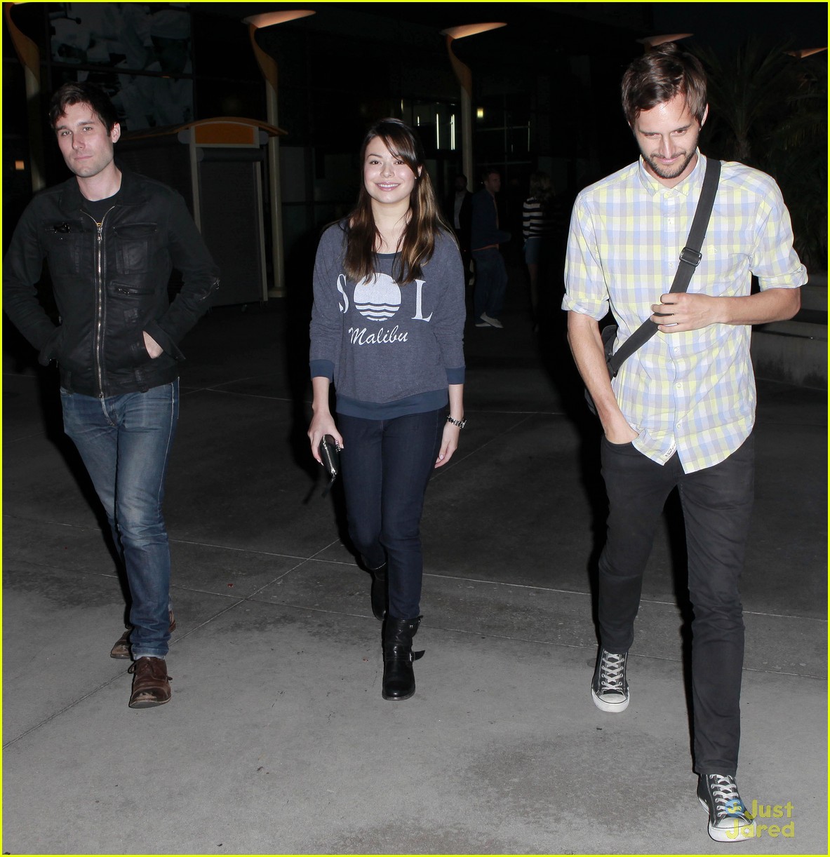 Miranda Cosgrove and Jennette McCurdy meet up with some guy friends at the Arclight Cinemas in Hollywood on Wednesday night (August 22).