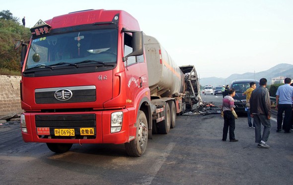 中新网 8月26日电 2012年8月26日凌晨2点40分许,包茂高速公路安塞段发生一起客车与运送甲醇货运车辆追尾碰撞交通事故,引发甲醇泄漏起火,导致客车起火,事故已造成36人死亡。据中央电视台消息,因事故发生时乘客均在熟睡,大量甲醇泄漏迅速燃烧,因而车上逃生机会相当少。 参与事故救援的延安消防支队参谋长岳玖祥介绍,两车追尾甲醇大量泄漏,导致客车严重变形,人员疏散困难,加上事故发生凌晨2点多,大部分乘客均在熟睡,大量甲醇泄漏,迅速围住客车燃烧,车上乘客逃生机会相当少。 2012年8月26日凌晨2点40分许,包茂高速公路安塞段由北向南K484+95米处,发生一起客车与运送甲醇货运车辆追尾碰撞交通事故,引发甲醇泄漏起火,导致客车起火,目前已造成36人死亡。 目前已确认客车为呼和浩特市运输集团公司的宇通牌大客车(车牌号蒙AK1475,驾驶员已死亡),8月25日下午17点由呼和浩特市发往西安,车辆核载39人,实载39人,死亡36人,抢救3人,目前正在医院救治。让我们为死者节哀,生命是如此脆弱