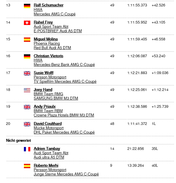 宝马的斯宾格勒第一,奥迪的年轻车手莫塔拉第二,卫冕冠军汤姆齐克第三