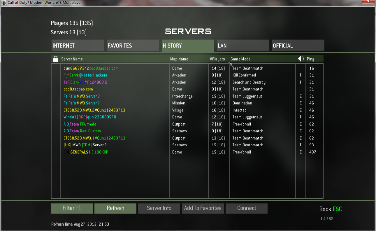 昨天挺好!今天和同学为了玩联机生存模式改了一下IP!现在想玩COD8联机多人模式不能玩了!之后history!LAN和internet都没有人了!!!怎么办!在线等高手!