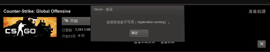 不是 好像是你程序已经开启了CS GO 就像是不能开两个CS GO一样 你试试在任务管理器找找有没有CSGO.EXE 有的话把它停止掉 如果还是不行的话 重启