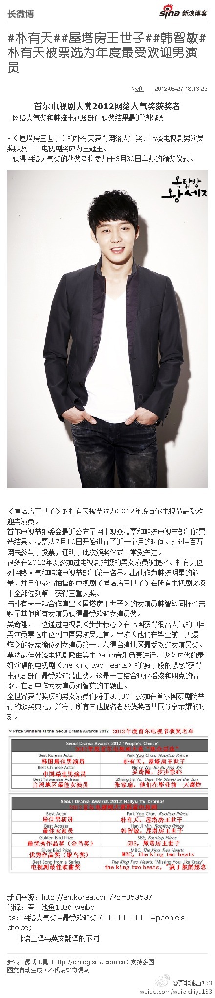 【YuMin】「120828」『新闻』吾非池鱼亲翻译的韩媒各大网站SDA…