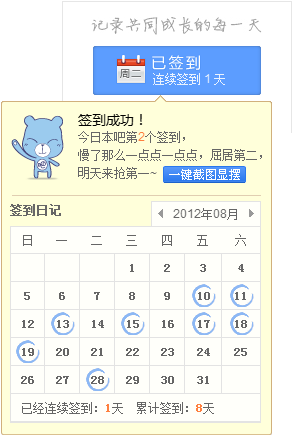 今日本吧第2个签到,晒下签到排名照,看看我神马水平