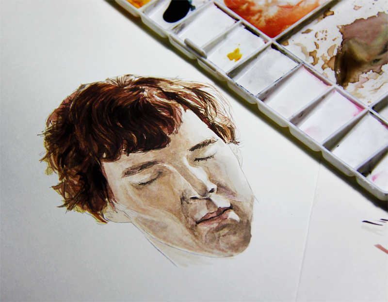 咳咳....我还以为他是用水溶铅笔画的呢- =直接用水彩上色超不好弄啊