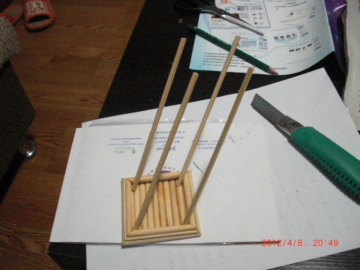 做好后,在塔身一层处加高,按比例我加了4层竹签。