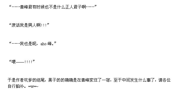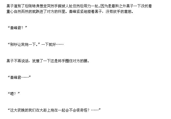 青峰庆幸现在是深夜,所以对方根本看不清他已经烧红的脸。╮(╯▽╰)╭其实我想吐槽阿大就算是在白天也看不清啊(喂!
