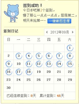 每天都有那么7、8个兄弟在坚持的签到,很感动!~!